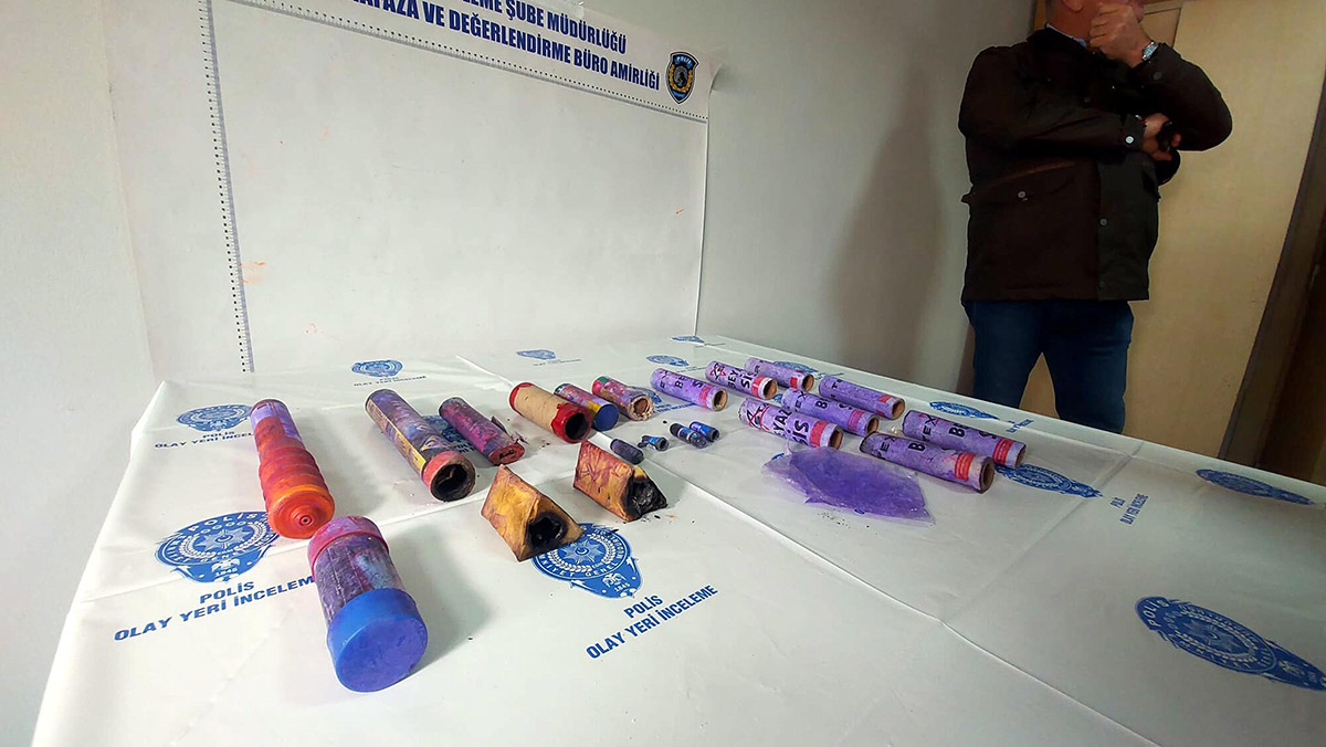 Öte yandan olayın ardından ele geçirilen işaret fişeği ile meşale, sis bombası ve torpiller, üzerinde parmak izi incelemesi yapıldıktan sonra İzmir İl Emniyet Müdürlüğü’ne bağlı Olay Yeri Şube Müdürlüğü ekipleri tarafından basına gösterildi.
