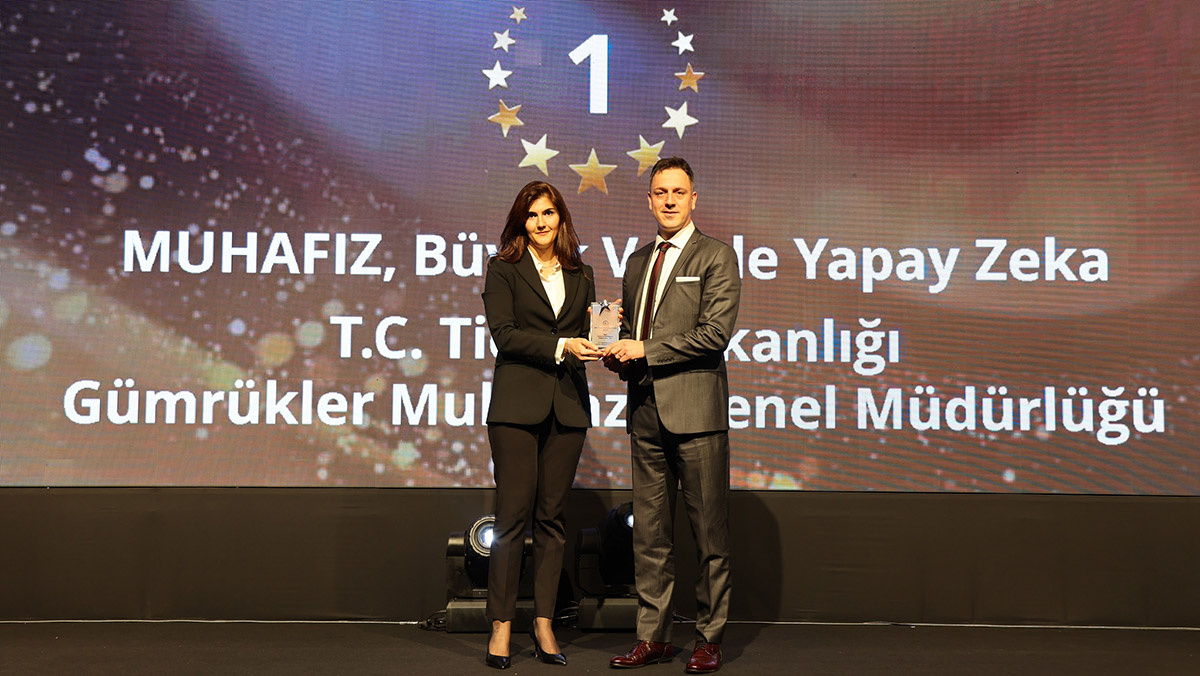 Dijital dönüşüm girişimlerine öncülük eden proje ve girişimlerin değerlendirildiği sektörün en prestijli ödüllerinden olan IDC Dijital Dönüşüm ödüllerinde Ticaret Bakanlığı Gümrükler Muhafaza Genel Müdürlüğü ‘MUHAFIZ, Büyük Veride Yapay Zeka’ projesiyle, ‘Best in Future of Intelligence’ (Geleceğin Yapay Zekası) kategorisinde 1’incilik ödülüne layık görüldü” denildi.