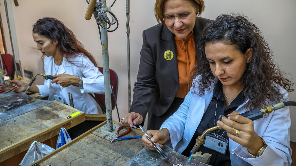 Kemer, çanta, taç, gibi ürünler yapıyoruz. Saf gümüşle yapılıyor. Atölyemizde altın dahi işleyebiliriz. O alt yapıya sahibiz. Kuyum atölyemizde kadın hakimiyetimiz var. Olgunlaşmanın mutfağında yetişen arkadaşlarımız. Önce öğrencilerdi, şimdi usta öğretici olarak mesleklerini gelecek nesillere aktarıyorlar” diye konuştu.