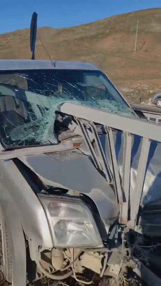 Bingöl’ün Karakoçan ilçesinde hafif ticari araç refüjdeki bariyere çarptı.