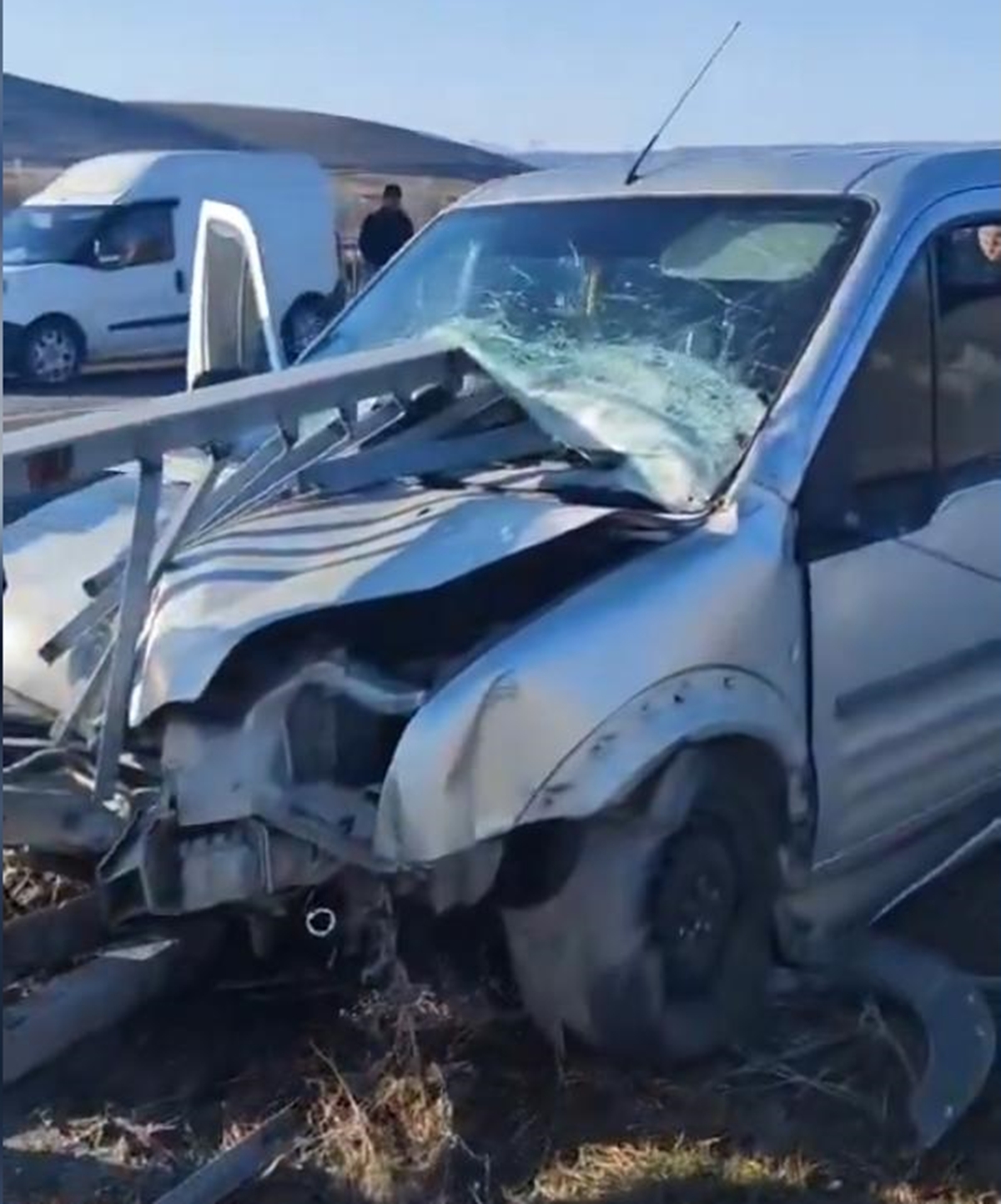 Bariyerin araca saplandığı kazada 1’i ağır, 2 kişi yaralandı.