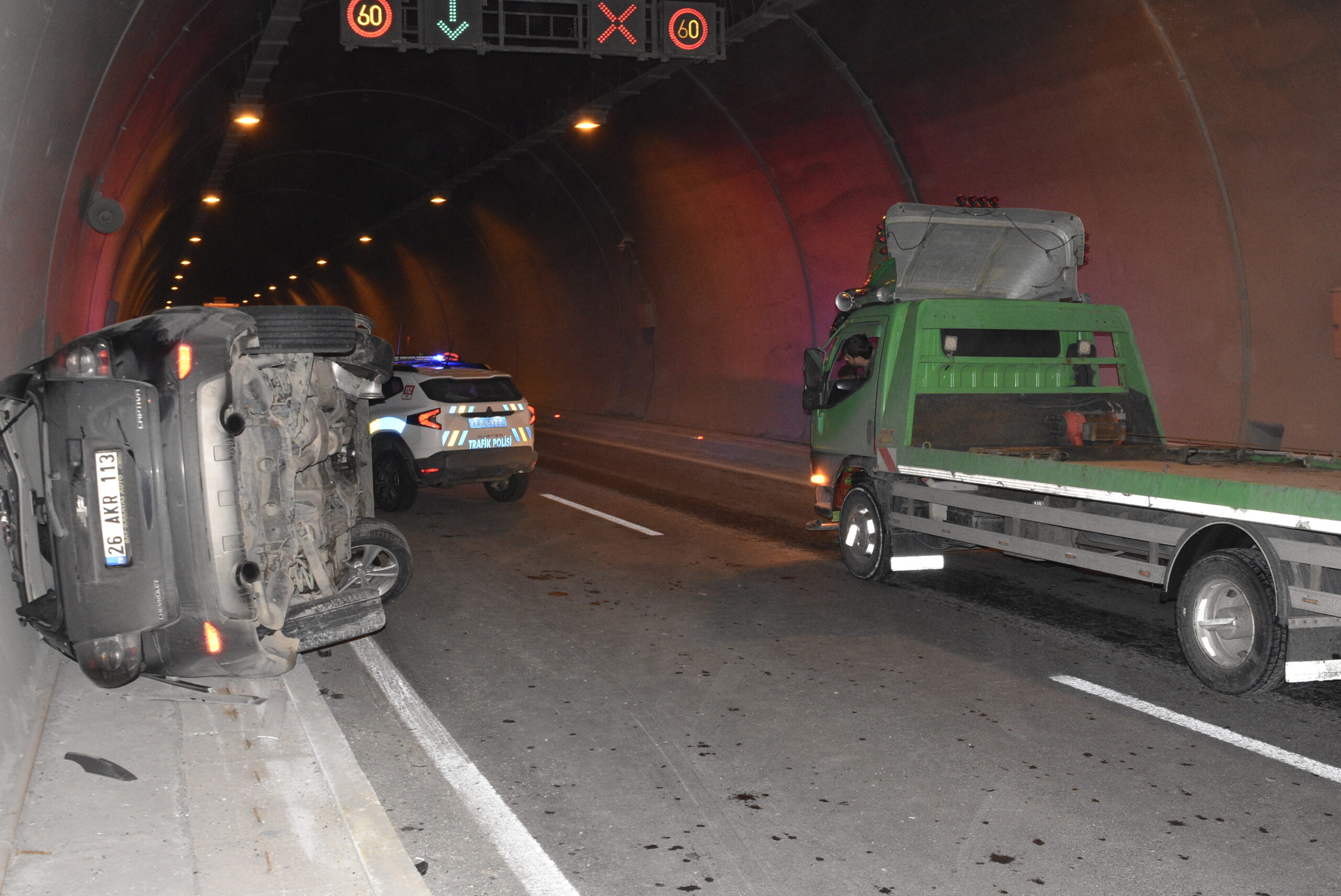 Kaza sonrası güvenlik nedeniyle bir süre trafiğe kapatılan tünel, araçların çekiciyle kaldırılmasının ardından yeniden ulaşıma açıldı.