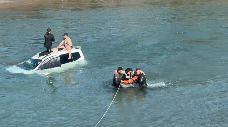 Tunceli’de hafif ticari araç, yaklaşık 15 metre yükseklikteki köprüden Uzunçayır Baraj Gölü’ne düştü. Sürüklenen aracın üzerine çıkıp, bekleyen sürücü ekiplerin çalışması ile kurtarıldı.