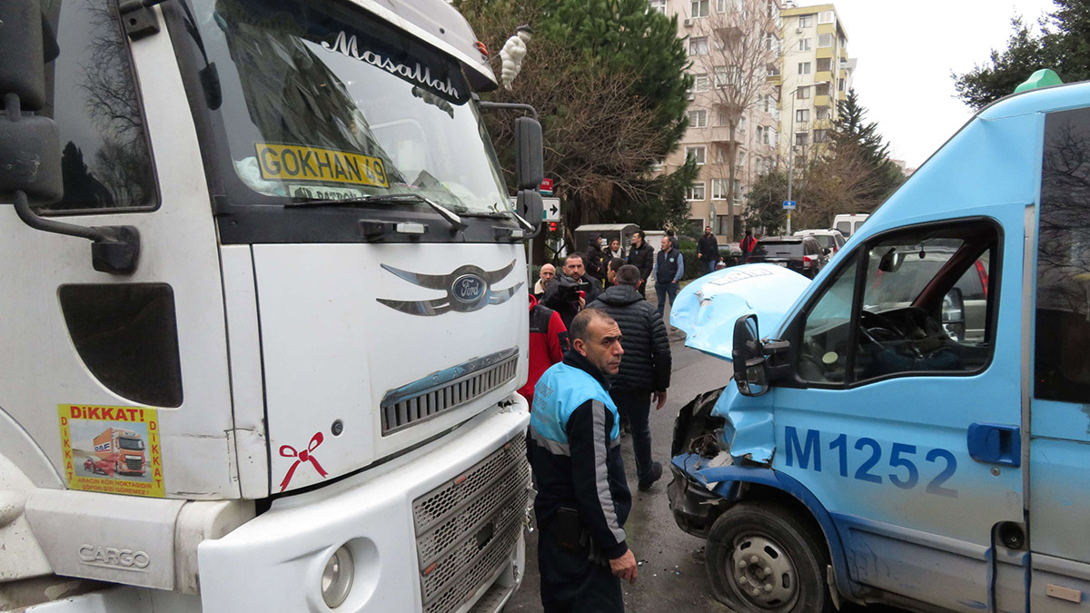 Kadıköy’de seyir halindeki hafriyat kamyonu yolcu minibüsüne çarptı. Kazada, minibüsteki 7 yolcu yaralanırken, kazayı yara almadan atlatan kamyon şoförü göz yaşlarını tutamadı.