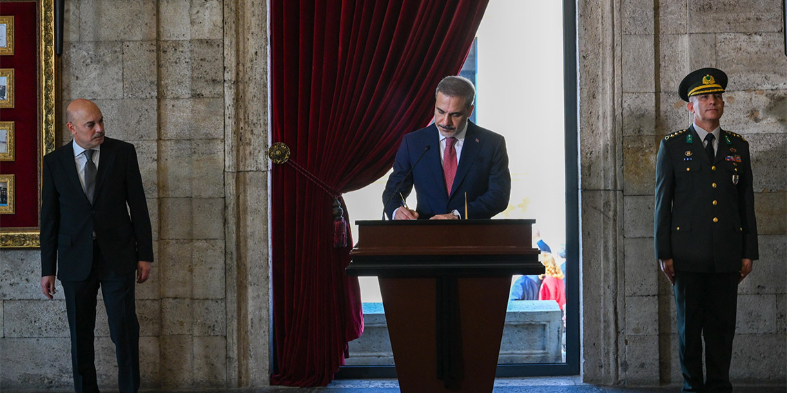 Bakan Fidan, daha sonra yurt dışı temsilcilikler ve merkez teşkilatlarında görevli büyükelçiler ile Anıtkabir’i ziyaret etti. Heyet, Aslanlı Yol’dan yürüdükten sonra Atatürk’ün mozolesine çelenk bıraktı. Ardından da Misak-ı Milli Kulesi’ne geçildi. Bakan Fidan, Anıtkabir Özel Defteri’ne şunları yazdı:
