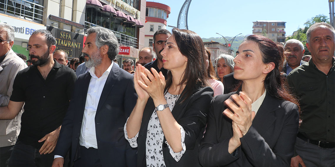 Hakkari’ye gelen DEM Parti Eş Genel Başkanı Tülay Hatimoğulları, DBP Eş Genel Başkanları Çiğdem Kılıçgün Uçar ile Keskin Bayındır, DEM Parti milletvekillerinin de içerisinde bulunduğu kalabalık tarafından karşılandı.