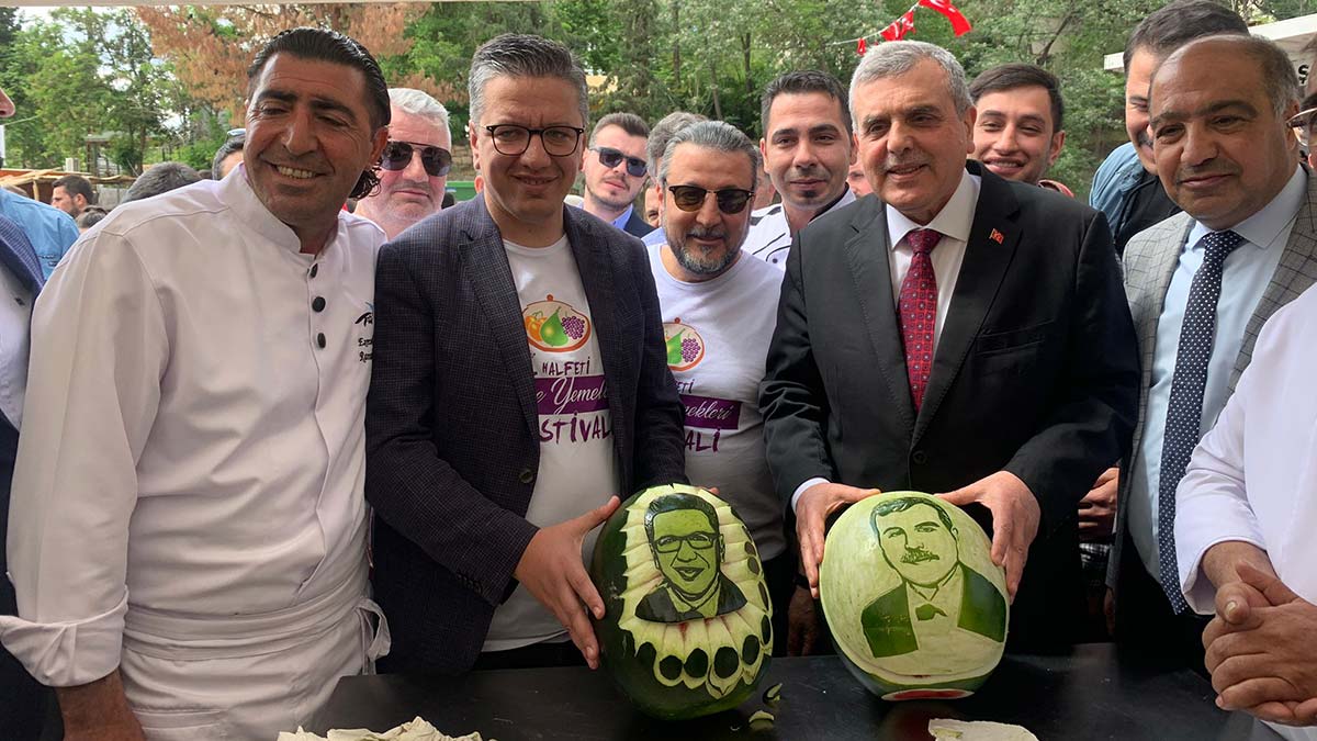 Festivalde aşçılar Büyükşehir Belediye Başkanı Zeynel Abidin Beyazgül ile Halfeti Belediye Başkanı Şeref Albayrak’ın resimlerini karpuza işledi. Renkli görüntülerin yaşandığı festivalde uzun kuyruk oluşturan davetlilere meyvelerden hazırlanan yemekler ikram edildi.