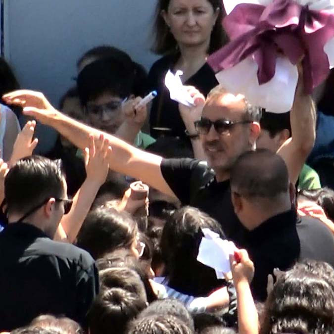 Levent’in en sevilen 5 şarkısını seslendirdiği konsere öğrencilerin yanı sıra veliler de büyük ilgi gösterdi. Okul çevresindeki binalarda oturanlar da Haluk Levent’in şarkılarına, özellikle de İzmir Marşı’na balkonlarından eşlik etti.