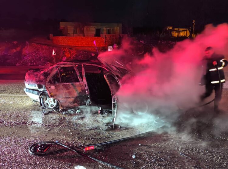 Adıyaman'ın Besni ilçesinde, hareket halindeyken alev alan otomobil yandı.