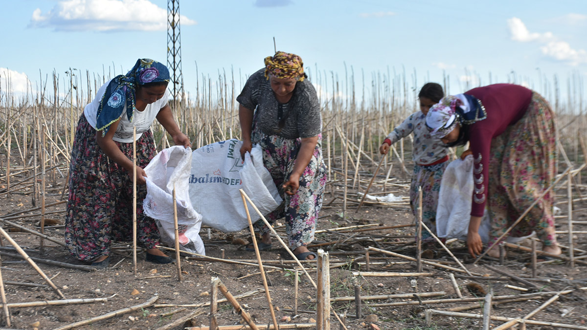 Özlem Biçer ise “Biz burada hurda topluyoruz, makinelerin arkasından gündöndü kafası topluyoruz. Çalışıyoruz, çoluk çocuk hep beraber tarladayız. Ekmeğimizi çıkarıyoruz. Hemen hemen bir ay daha buradayız. Çünkü daha toplanacak ayçiçekleri var” ifadesini kullandı.