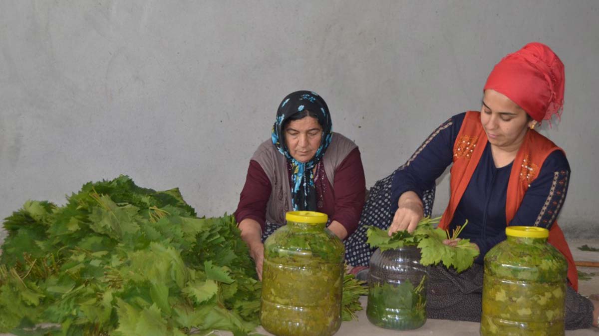 Hatay’ın ilçesi Hassa’da yaklaşık 50 bin dekarlık alanda üretilen üzüm ağaçlarından yaprak toplamak için sabahın ilk ışıklarıyla bağa giden kadınlar, evlerinin bütçelerine de katkı sağlıyor. Toplanan yaprakların bir kısmı, kışlık tüketim için bidonlara doldurulurken, fazlaları da satılıyor.