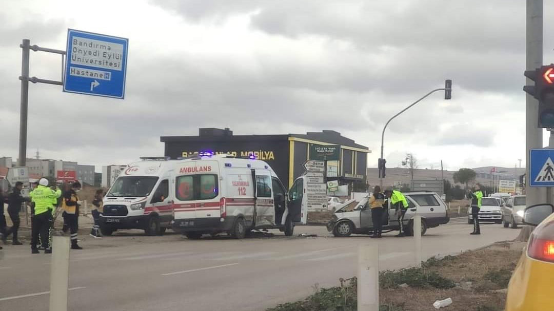 Kaza, saat 12.00 sıralarında Bandırma-Çanakkale Otoyolu Hastane Kavşağı’nda meydana geldi. Bandırma Devlet Hastanesi’ne hasta götüren Necip Öztürk yönetimindeki 10 DM 510 plakalı ambulansa kırmızı ışıkta dönüş yaptığı sırada, Bandırma yönüne giden Sinan Gürer (60) yönetimindeki 10 UU 959 plakalı otomobil çarptı.