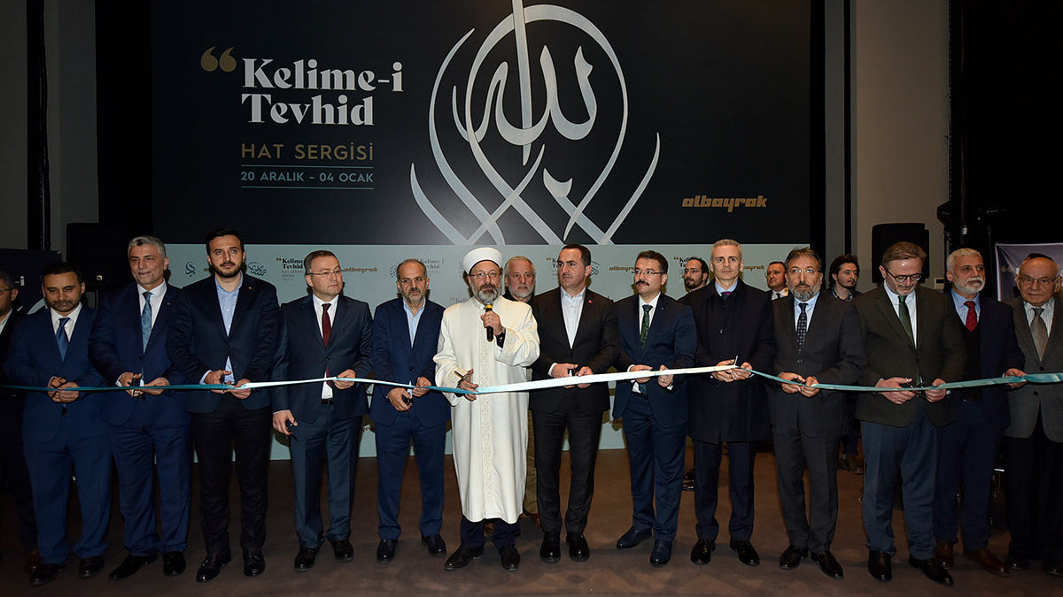 Kelime-i Tevhid temalı serginin gelecek nesillere örnek olması açısından çok önemli olduğunu ifade eden Erbaş, “Mümin olmanın birinci şartı ‘La ilahe illallah Muhammedun Resulullah’ ne kadar güzel. Aynı zamanda kelime-i tevhidin yazıldığı o levhaları okuduğumuz zaman en mübarek zikri de yapmış oluyoruz. ‘Kur’an-ı Kerim Hicaz’da indi, Mısır’da okundu, İstanbul’da yazıldı’ diyoruz ya işte onun da bir ispatıdır. İslam medeniyetinin en güzel sanatlarından birisinin oluşmasına bizim hatlarımız vesile oldu” diye konuştu.