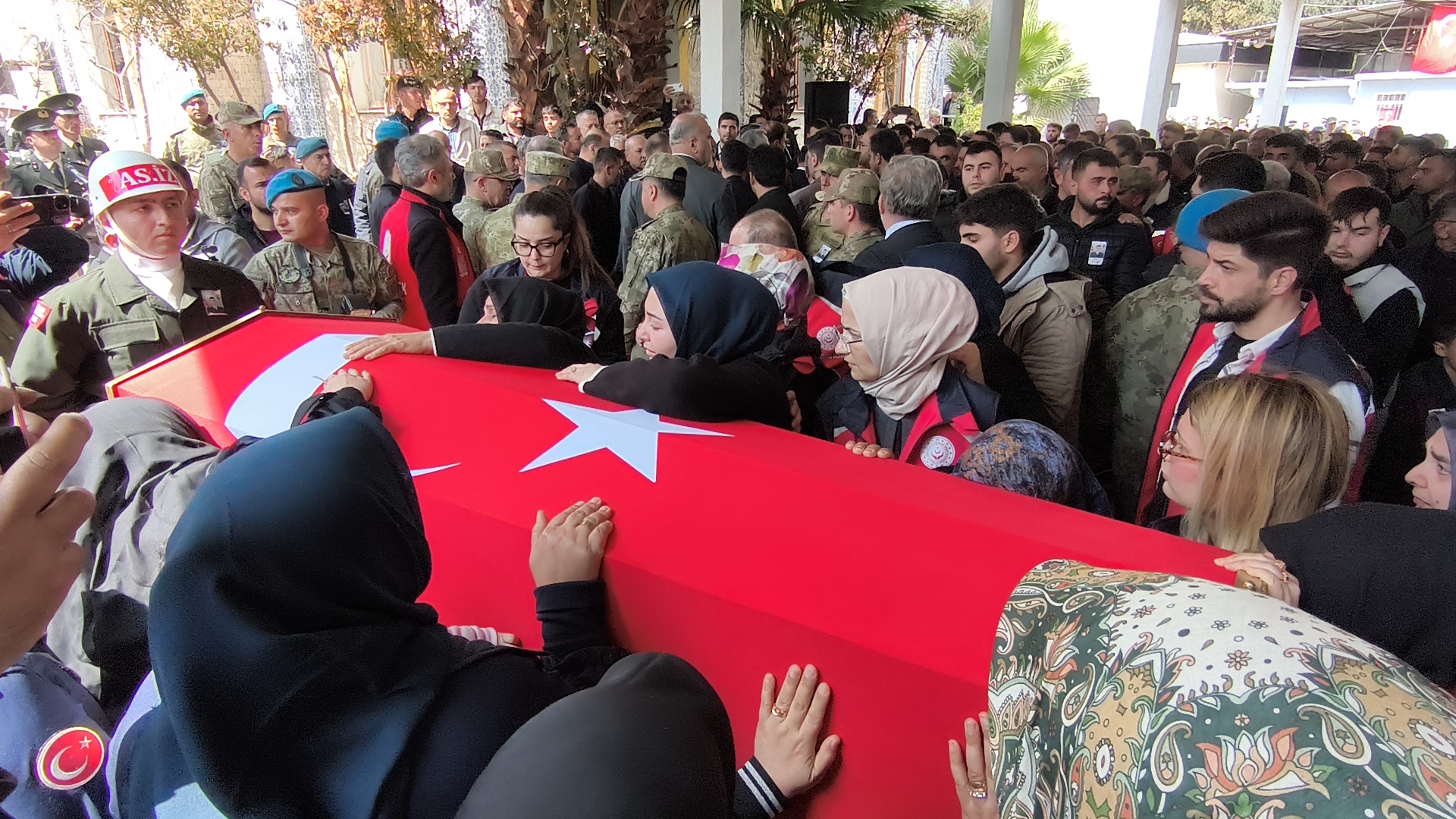 - Törende, şehidin annesi ve kardeşleri tabutuna sarılarak gözyaşı döktü.