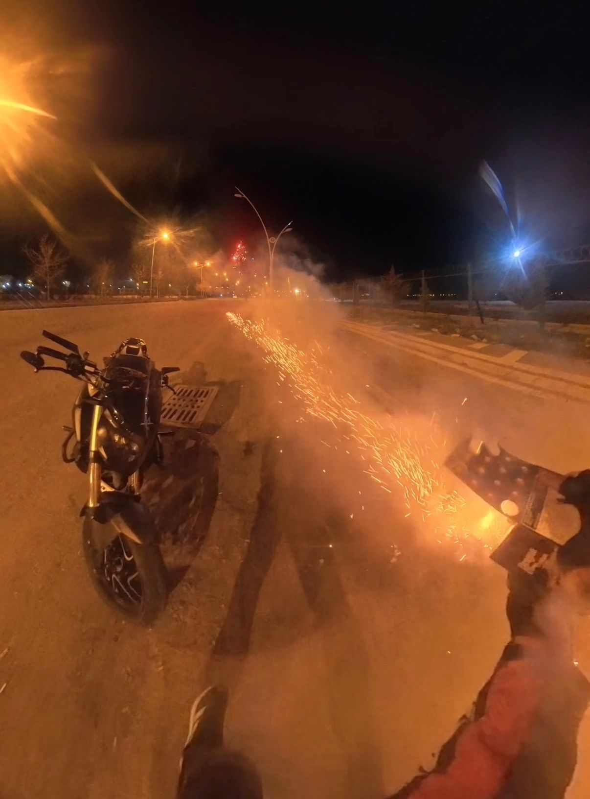Diyarbakır’da bir motosikletli, düzeneğe koyduğu havai fişekleri şaka amacıyla arkadaşlarının bulunduğu yöne peş peşe ateşledi.