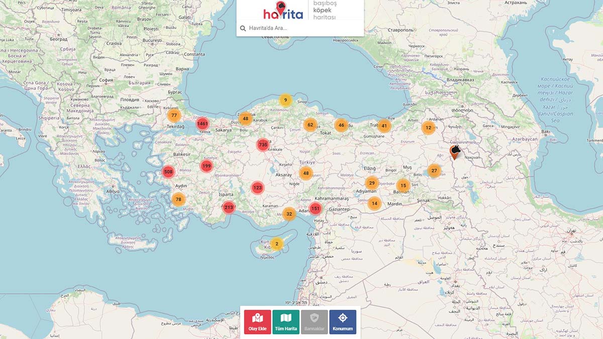 Sokak köpeklerinin harita üzerinde yerini gösteren internet uygulaması Havrita’ya hayvanları hedef gösterdiği ve ölümlerine sebebiyet verdiği gerekçesiyle sosyal medya üzerinden tepki yağdı.