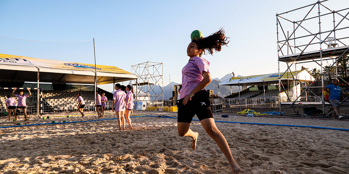 Hentbolcu depremzede Sena Şanlı (13) yaşadığı zor günleri sporla aşıyor. U17 Kadın Plaj Hentbol Milli Takımı’nda forma giyen Şanlı, Avrupa şampiyonasına Antalya’daki kampta hazırlanıyor.