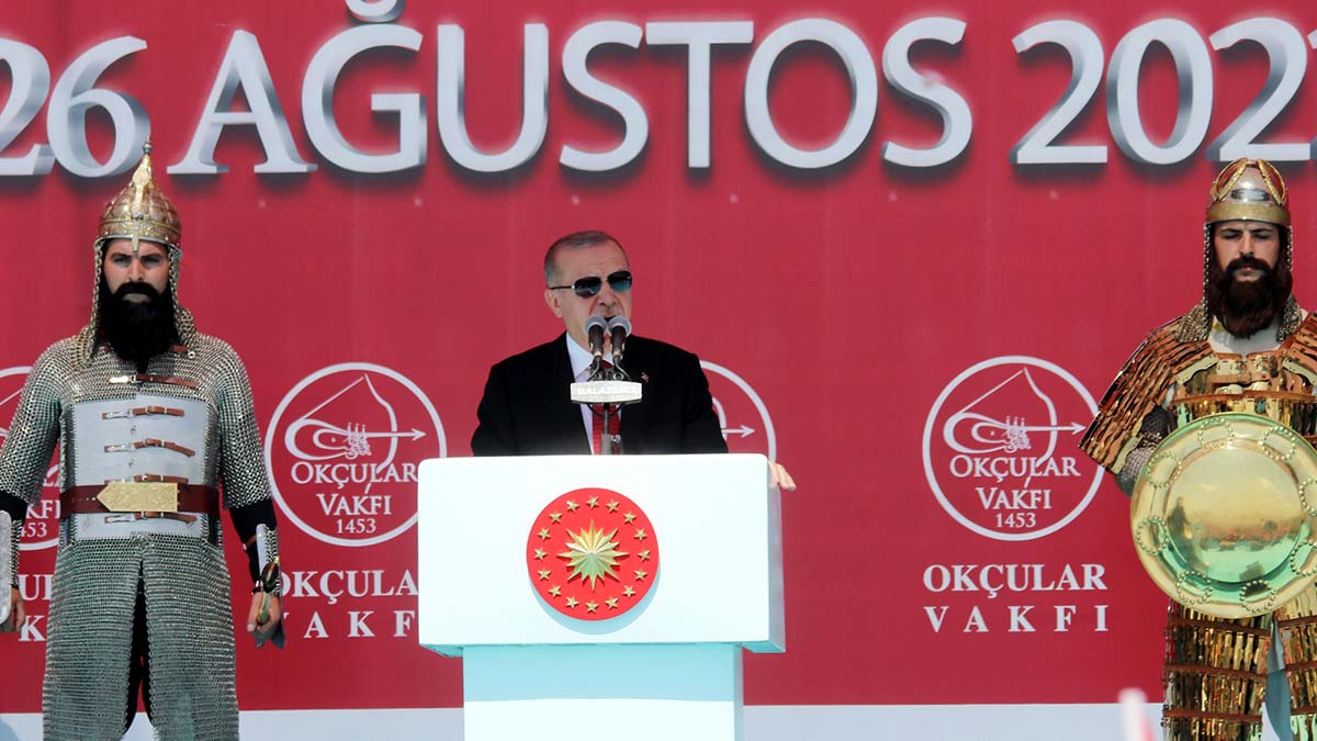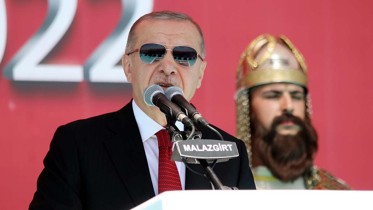 “Türk tarihinde pek çok zafer varken Malazgirt’in üzerinde bu kadar çok durmamızın, gençlerimize bu zaferi anlatmak için çaba göstermemizin bir sebebi vardı” diyen Erdoğan, “Çünkü Malazgirt, milletimizle birlikte tüm İslam dünyasının, Müslümanların da bir zaferidir. Malazgirt, bu coğrafyada kazandığımız diğer tüm zaferlerin ilk adımıdır, anasıdır, bereketli kaynağıdır. Halide Nusret, Malazgirt’in bu vasfını şu şekilde dizelere döküyor: Atlanmış, pusatlanmış erleri sanki ‘yel’di. Nal sesleri bir zafer marşı gibi yükseldi. Şimşek şimşek hızlandı; zulmü, zulmeti deldi. Her savaşa benzemez; bu bir ‘kutsal savaş’tı. Ay parçası yiğitler Hak yolunda savaştı.’