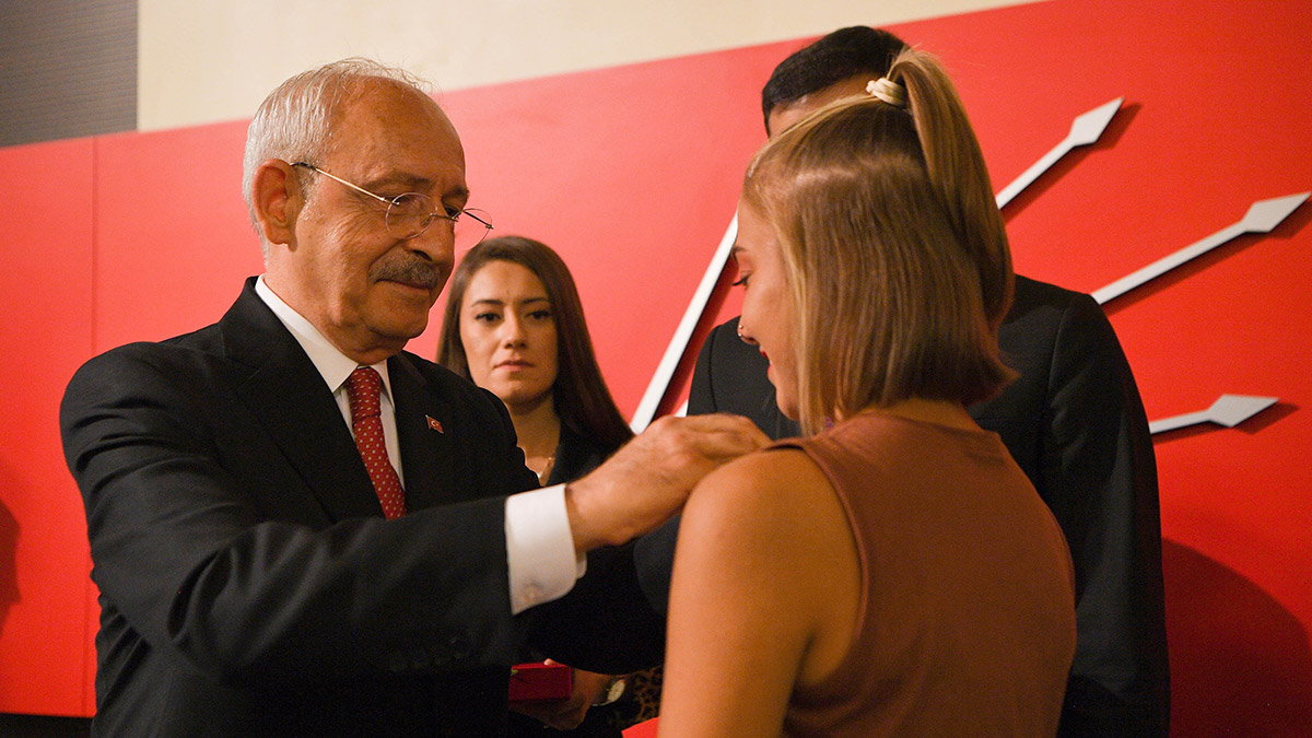 Kılıçdaroğlu, konuşmasının ardından 99’uncu kuruluş yıl dönümüne özel CHP’ye üye olan 99 gençten 9’una parti rozetini taktı.