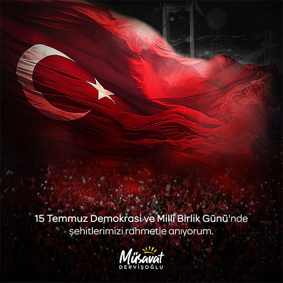 İYİ Parti Genel Başkanı Musavat Dervişoğlu 15 Temmuz mesajı paylaştı. Dervişoğlu, “Hiç şüphesiz ki; egemenlik kayıtsız şartsız milletindir” dedi.