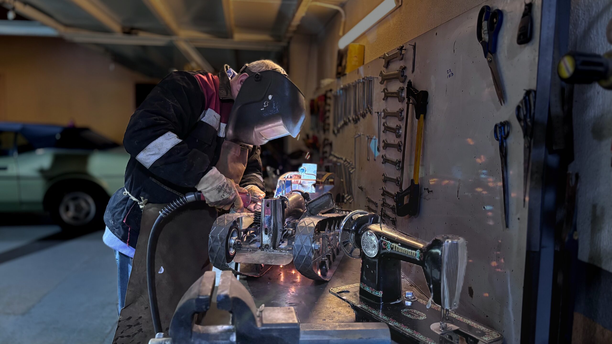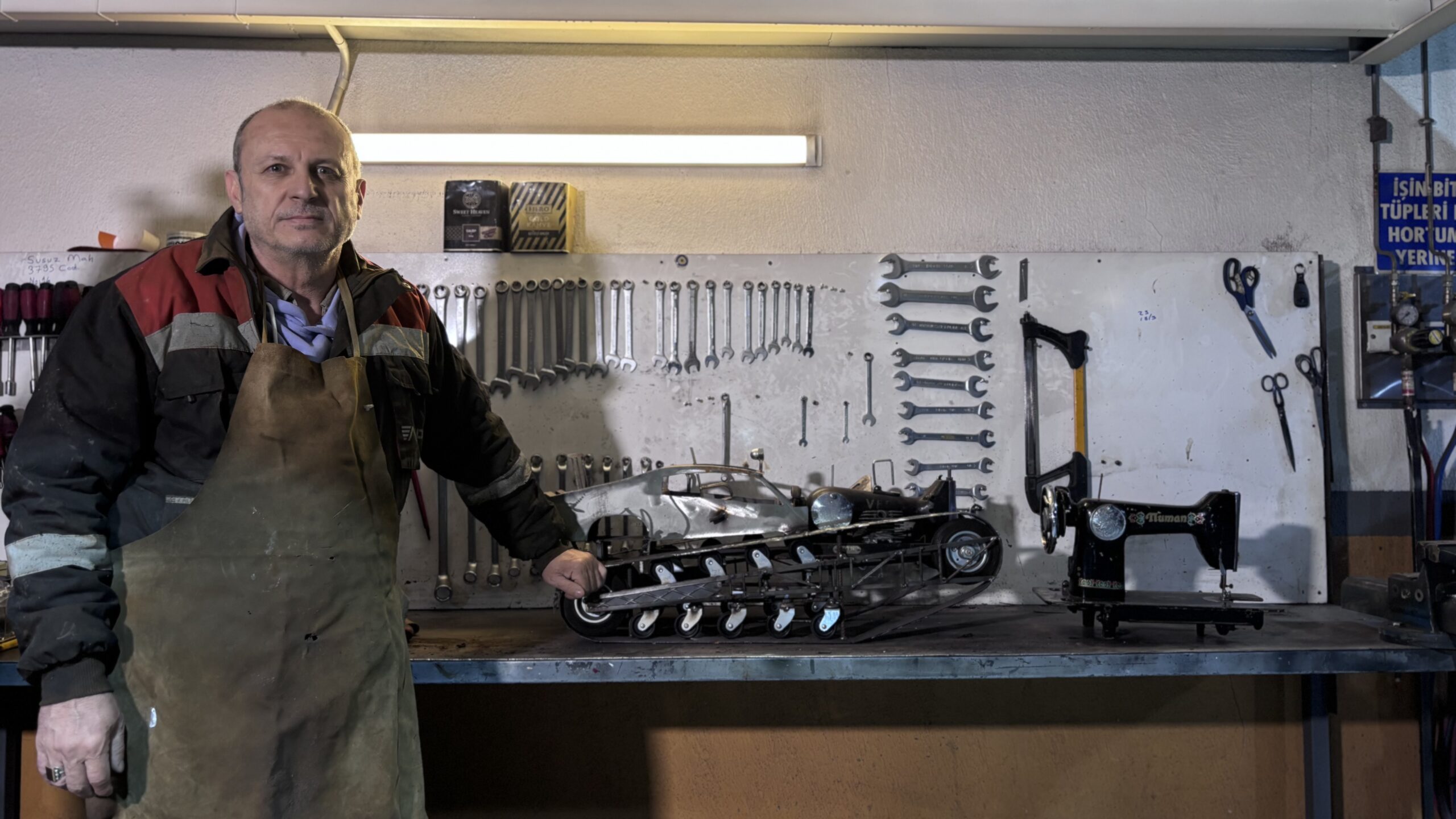 Annemin mesleği, benim çocukluğumdaki yapmış olduğum o çıraklık hepsi bir araya geldi ve bu noktada birleşti. Dikiş makinelerini, dikiş makinesi tamircilerinden ya da 2’nci el satış sitelerinden buluyorum. Başta bunu hobi amaçlı yapıyordum. Fakat elimde o kadar çok araba birikti ki artık stok problemi yaşamaya başladım. O yüzden çeşitli sergilere katıldım.
