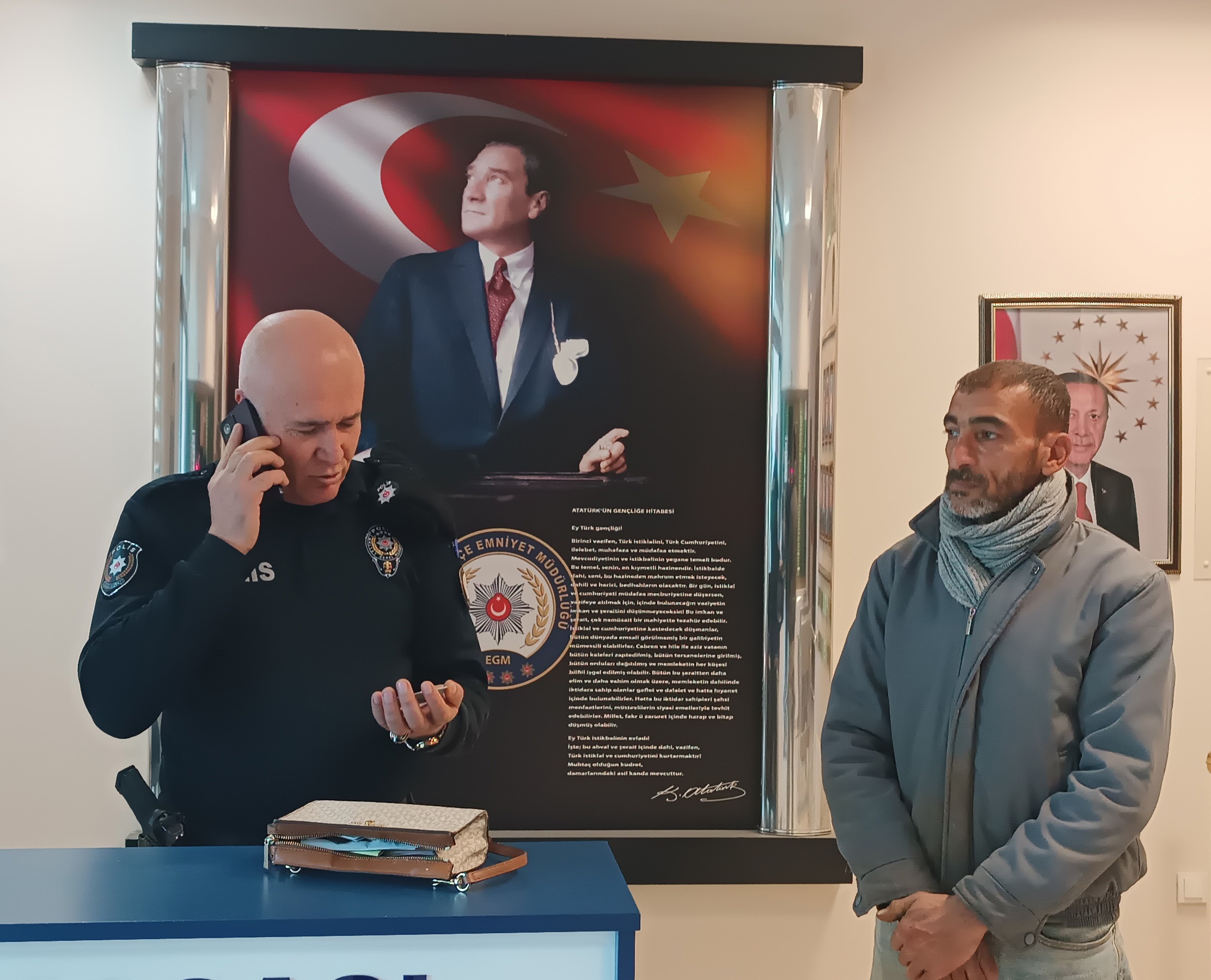 Kalkan Kılıç, çantayı bulunca işini bitirip emniyete gittiğini ifade ederek, “Hurdacılık yapıyorum, sepetli motosikletimle topladığım hurdaları götürürken yolda bayan çantası buldum. Çantaya baktığımda para ve çekler vardı. Hurdaları bıraktıktan sonra emniyete gelerek polislerin aracılığıyla sahibine teslim ettim. Her duyarlı vatandaşın yapması gerekeni yaptım. Ekmeğimi hurdadan kazanıyorum. Çantadaki parayı saymadım ama bayağı yüklüydü. Para ve çekleri de sayarsak ben bir yılda kazanamam” diye konuştu.