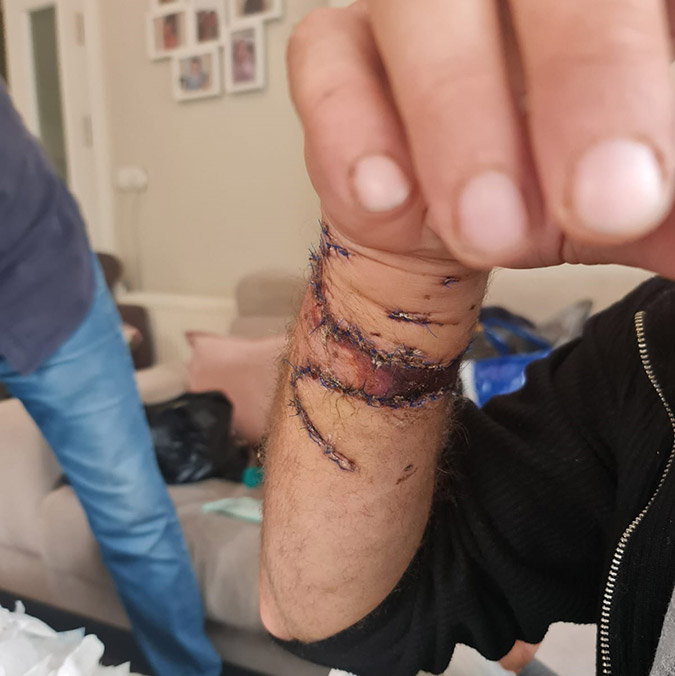 Daha sonra oğluna tekrar kapıyı açıp köpeği getirmesini söyledi. Köpek tekrar geldi bu kez kolumdaki atardamarı kopardı. Bunun ardından gözlerimde ışık azalması oldu. Ellerinden kurtulup kendimi dışarı attım. Karşı kaldırıma oturdum. Köpeği kaldırımdayken yeniden üzerime salmışlar. Köpeği tekmeyle savuşturmuşum.
