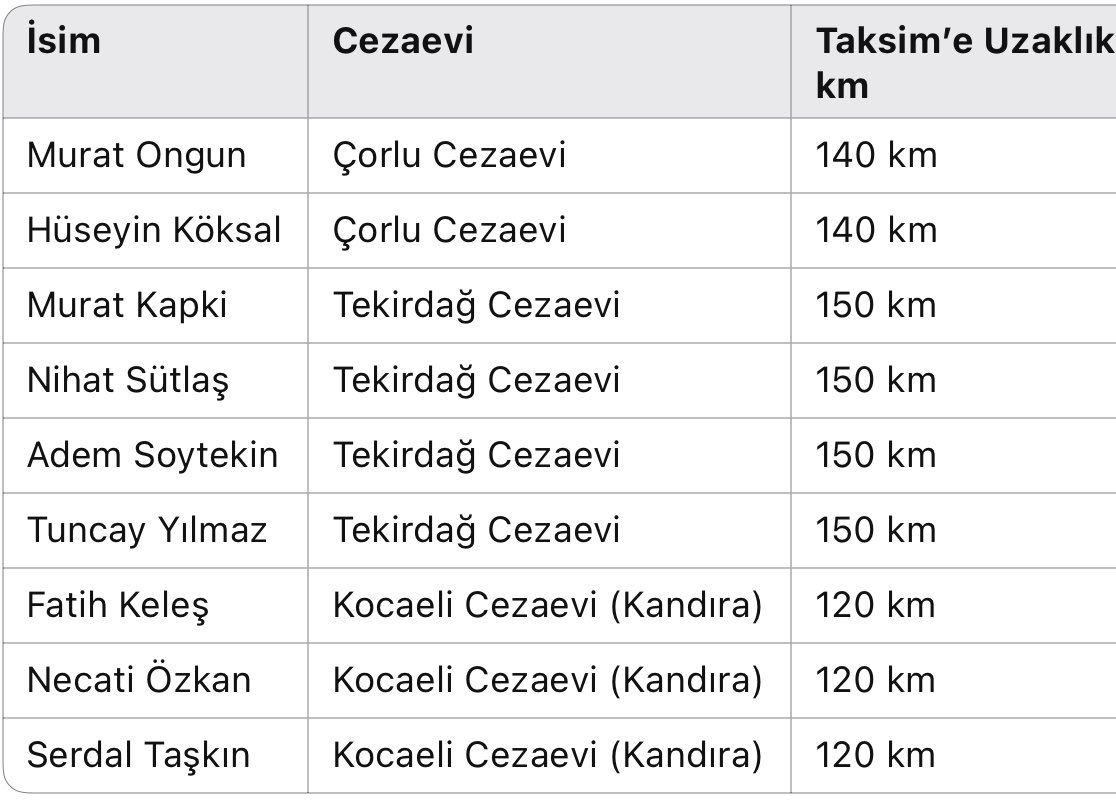 Cumhuriyet Halk Partisi Türkiye Büyük Millet Meclisi Üyesi Gökhan Günaydın, sosyal medya platformu X hesabından, “İBB soruşturmasında tutuklananlardan Murat Ongun ve Hüseyin Köksal ÇORLU, Murat Kapki, Nihat Sütlaş, Adem Soytekin ve Tuncay Yılmaz TEKİRDAĞ, Fatih Keleş, Necati Özkan ve Serdal Taşkın KOCAELİ cezaevine naklediliyorlar. “Ne kadar dağıtırsan o kadar iyi”diye talimat var anlaşılan!” dedi.