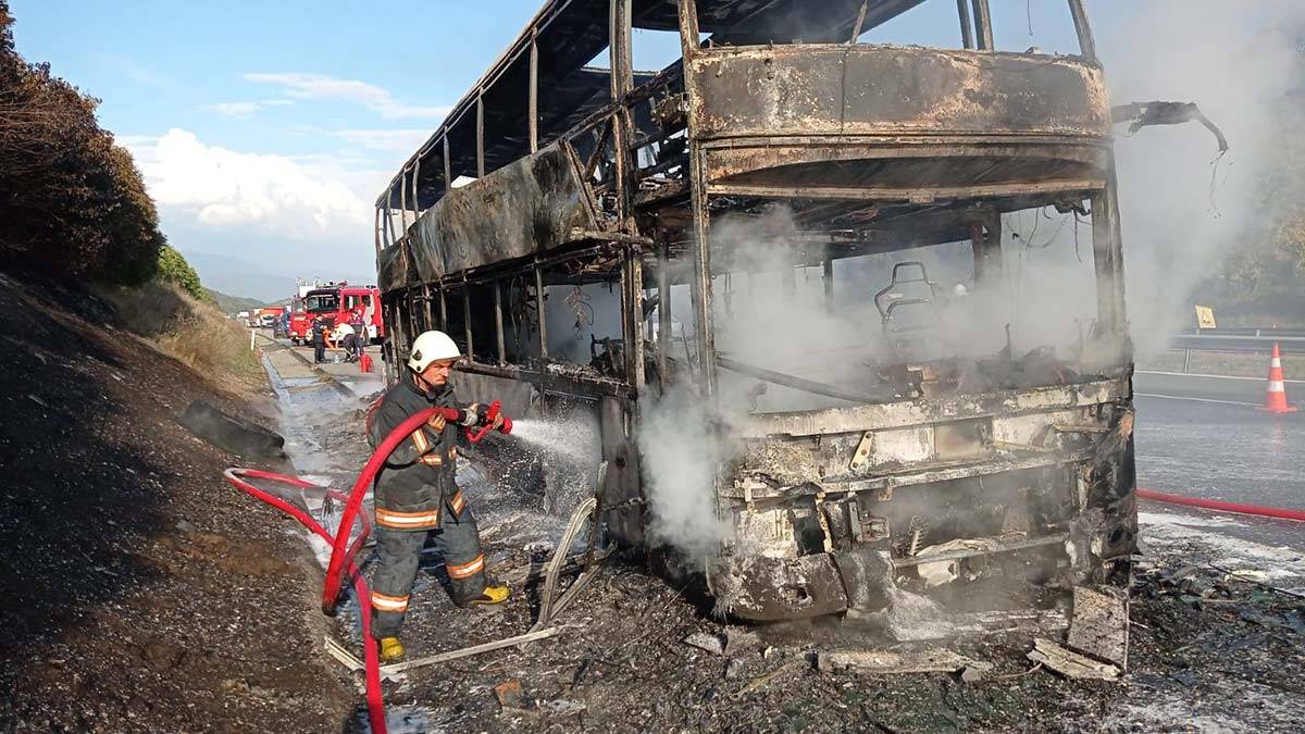 Otobüsün Ankara’da tamir edildiği, araçta şoför ve görevliler olmak üzere 4 kişi olduğu, aracın sefere başlaması için İstanbul’a götürüldüğü öğrenildi. Söndürme çalışmalarının ardından yol, yeniden ulaşıma açıldı. Yangınla ilgili soruşturma başlatıldı.