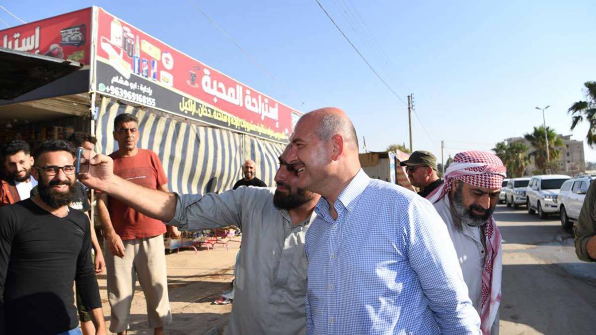 Afrin’deki temaslarının ardından Azez’e geçen Soylu ve beraberindekiler, Azez Emniyet Müdürlüğünü ziyaret etti. Burada yerel kolluk kuvvetlerine hitap eden Soylu, Suriye’de yaşanan insanlık dramına sessiz kalmadıklarını belirtti. Soylu, “Biz Müslüman’ız. Allah’ın bize emri var. Komşuluk hukuku vardır. Biz yıllarca birlikte yaşadık. Biz dünyada sınavda olduğumuzu biliyoruz. Aynı zamanda gücün imtihanındayız. İnsanlığın imtihanındayız. Burada olmaktan çok mutluyuz. Eğer sınırın bu tarafında olan zulme sessiz kalsaydık, sizinle beraber olamasaydık bu sınavı kaybederdik.