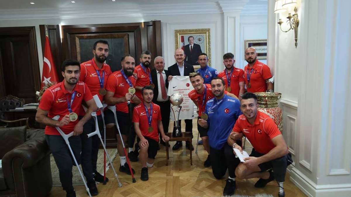 Ampute Futbol Milli Takımı adına Soylu‘ya destekleri için teşekkürlerini sunan Teknik Direktör Osman Çakmak, “Arkadaşlarım adına, Federasyonumuz adına ne zaman bir talebimiz olsa gerek gazilerimizle ilgili gerekse Ampute Milli Takımımız için emrimize amade oldunuz. Allah nasip ederse Dünya Şampiyonası’nda ev sahibi olacağız” ifadelerini kullandı.