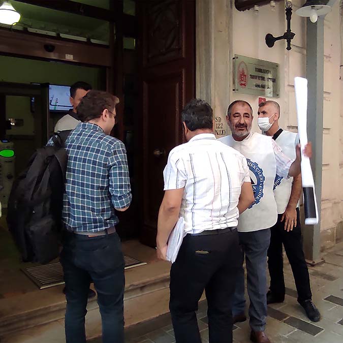 Bugün buraya toplanma nedenimiz, yaklaşık 1.5 ay önce, İETT Genel Müdürlüğünce yerleştirilen, casus kamera dediğimiz, şoföre endekslenmiş, sadece şoförü hedef alan ve şoförün bütün hareketlerini denetleyen kameradır. Aracın içerisindeki 7-8 kamera bizim konumuz değil. Sürekli şoföre bir baskı ve mobbing aracı haline gelmiş olan sesli ve görüntülü kamera sisteminin iptal edilmesi, burada açığa çıkan rapor ve cezaların iptal edilmesi konusunda bir imza kampanyası sürdürdük. Sadece şoför arkadaşlarımızın bin 400 imzasını bugün İETT Genel Müdürlüğüne vereceğiz” dedi.