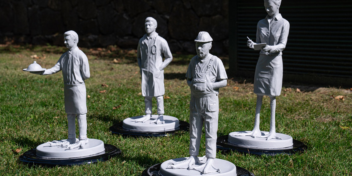 Doktor olmasına rağmen heykeltıraşlık eğitimi alan ve ikinci mesleğinin de böylece heykeltıraşlık olduğunu belirten Olcay Gültepe, “Hala eğitimim devam ediyor. Yüksek lisansı bitirdim. Şimdi de doktora aşamasındayım. Sergiye katıldığım eserimin adı ise ‘Hayalperest’. Aslında bir anlamda, hepimizin yaşadığı şeyleri anlatmak istedim. Son birkaç yıldır; pandemi, deprem, iklim değişikliği gibi o kadar çok ruhumuza yüklenen olaylar var ki kendimizi tehdit altında hissediyoruz. Bir kısmımız altımızdaki zemini kaygan hissediyoruz.