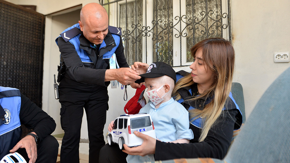 Adana’da bağışıklık sistemi yetmezliği (Primer immün yetmezlik) hastası olarak dünyaya gelen ve şubat ayında ablasından ilik nakli yapılan Bilal Bilen’e (4), polisler sürpriz yaptı. Çok sevdiği polislerle oyun oynayan Bilal, ekip aracıyla da mahallede tur attı.