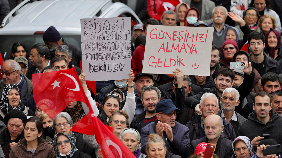 14 Mayıs’ta 86 milyon insanın iktidara ‘Güle güle,’ ‘Bay bay’ diyeceğini anlatan İmamoğlu, “86 milyon insanımızla, bu ülkenin sahibi olduğunu hissettirdiği bir dönemi başlatacağız. Gençlere hatırlatayım; dayınız yok, halanız yok, tanıdığınız yok, o malum partiye de üye olma durumunuz yoksa işe girebiliyor musunuz? İşte biz ne diyeceğiz biliyor musunuz? Bu memlekette çaba gösteren, emek gösteren, çalışan herkese, ‘Hakkımı alacağım duygusu’nu her gence vereceğiz.