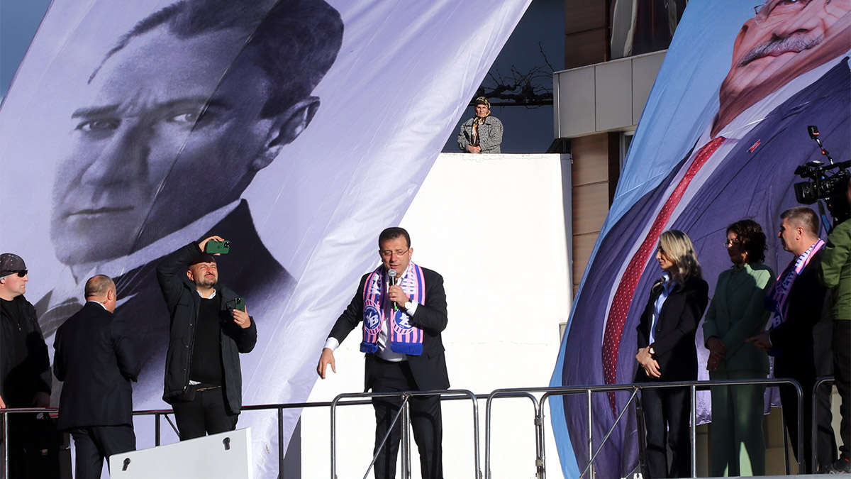 Milletin devletin sahibi olduğunu aktaran İmamoğlu, “Millet ne istiyor biliyor musunuz? Millet güler yüz istiyor. Millet döver gibi değil, sevecek ama gibi de değil gerçekten sevecek, gönülden sevecek, oyu için hiç değil, şu memleketin her insanına hizmet etmenin gururunu yaşayacak. Oyu için değil, oy versin vermesin sevecek. Partiler gelir geçer, esas olan devlet, esas olan millettir. Burada dünya güzeli bir kızımız yazmış. ‘Hangi çılgın bana zincir vuracakmış şaşarım’, işte söz hakkı. Demokrasinin temeli, sözünü söyleyecek, hakkını arayacak. Sözünden, fikrinden dolayı cezalandırmak yok. İşte biz memleketimizin bu güçlü demokrasi ile yönetilmesini ve taçlanmasını istiyoruz. Bu seçim o seçim” diye konuştu.