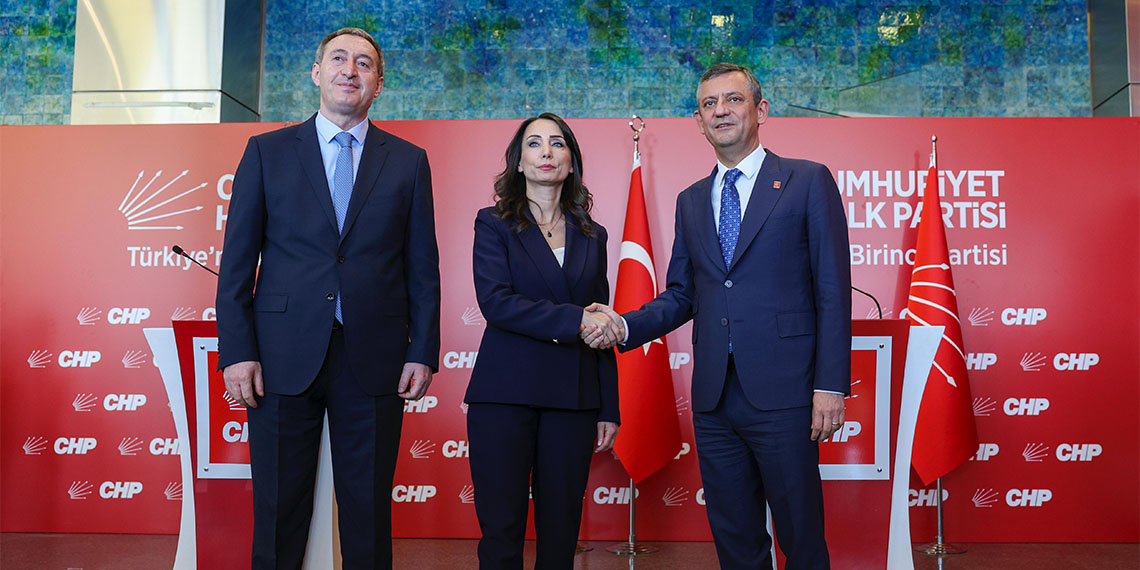 Cumhuriyet Halk Partisi Genel Başkanı Özgür Özel, Halkların Eşitlik ve Demokrasi Partisi (DEM Parti) Eş Genel Başkanları Tülay Hatimoğulları ve Tuncer Bakırhan ile CHP Genel Merkezi’nde bir araya geldi. CHP lideri Özel’e, CHP Genel Sekreteri Selin Sayek Böke ve Genel Başkan Yardımcıları Ensar Aytekin ile Gökçe Gökçen eşlik etti.