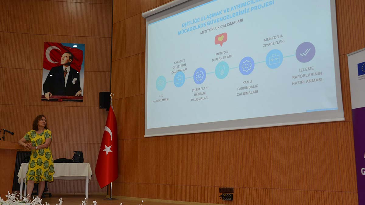 Türk Kadınlar Birliği tarafından yürütülen ‘Eşitliğe Ulaşmak ve Ayrımcılıkla Mücadelede Güvencelerimiz’ projesinin Erzurum toplantısına katılan yönetici Ayşen Karakulak, Ocak 2020’de başlayan projenin 7 bölgede 35 ilde yürütüldüğünü kaydetti. Erzurum Teknik Üniversitesi Mühendislik ve Mimarlık Fakültesi salonunda, sivil toplum kuruluşu temsilcilerinin katıldığı toplantıda konuşan Karakulak, Türk Kadınlar Birliği’nin kadına yönelik şiddetin önlenmesi, cinsiyete dayalı ayrımcılığın ortadan kaldırılması ve toplumsal cinsiyet eşitliğin sağlanması, ulusal ve uluslararası hukuki güvenceler sağlayan sözleşmelerin yaygınlaştırılması ve farkındalığın artırılması amacıyla projenin hazırlandığı bilgisini verdi.