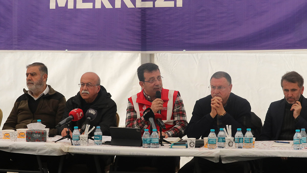 İstanbul Büyükşehir Belediye Başkanı İmamoğlu, Hatay’da kurdukları Deprem Koordinasyon Merkezi’nde basın mensuplarıyla bir araya geldi. Toplantıya Hatay Büyükşehir Belediye Başkanı Lütfü Savaş, belediye başkanları, CHP teşkilatı ve partililer ile bazı STK temsilcileri de katıldı. İmamoğlu, deprem bölgesinde 18 gündür 4 bin 500’e yakın personelin görev aldığı çalışma yürüttüklerini, 2 bin personelin aktif olarak sadece Hatay’da bulunduğunu söyledi.