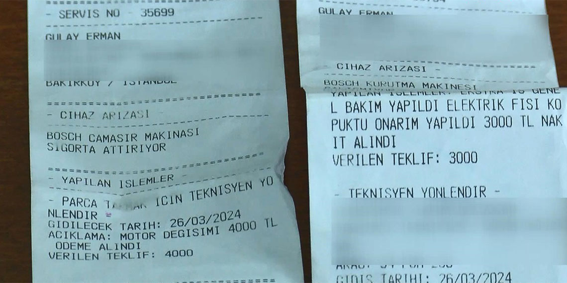 Bakırköy’de yaşayan Gülay Erman, 26 Mart’ta, çamaşır makinesinin arızalanması üzerine internetten bir tamirci buldu. İddiaya göre evine gelen tamirciler, önce çamaşır makinesinin motorunun arızalı olduğunu söyleyip 7 bin lira karşılığında yeni motor taktı. Makinenin aynı gün tekrar arızalanması üzerine Gülay Erman, firmaya telefon ederek durumu bildirdi. Aynı tamirciler ikinci kez eve gelerek, firmada tamir edilmesi gerektiğini söyleyerek çamaşır makinesini alıp götürdü. 1 aydır firmaya telefon edip makinesinin durumunu soran ve makineyi geri almak istediğini belirten Gülay Erman, henüz sonuç alamadığını ve mağduriyet yaşadığını söyledi. Evine gelip çamaşır makinesini götüren servis çalışanına cep telefonu numarası üzerinden defalarca mesaj atan Erman, çalışanın kendisini oyalayıcı nitelikte sesli ve yazılı cevaplar aldığını söyledi. Tüketici Hakem Heyeti’ne şikayette bulunan, Gülay Erman polise giderek şikayetçi oldu.