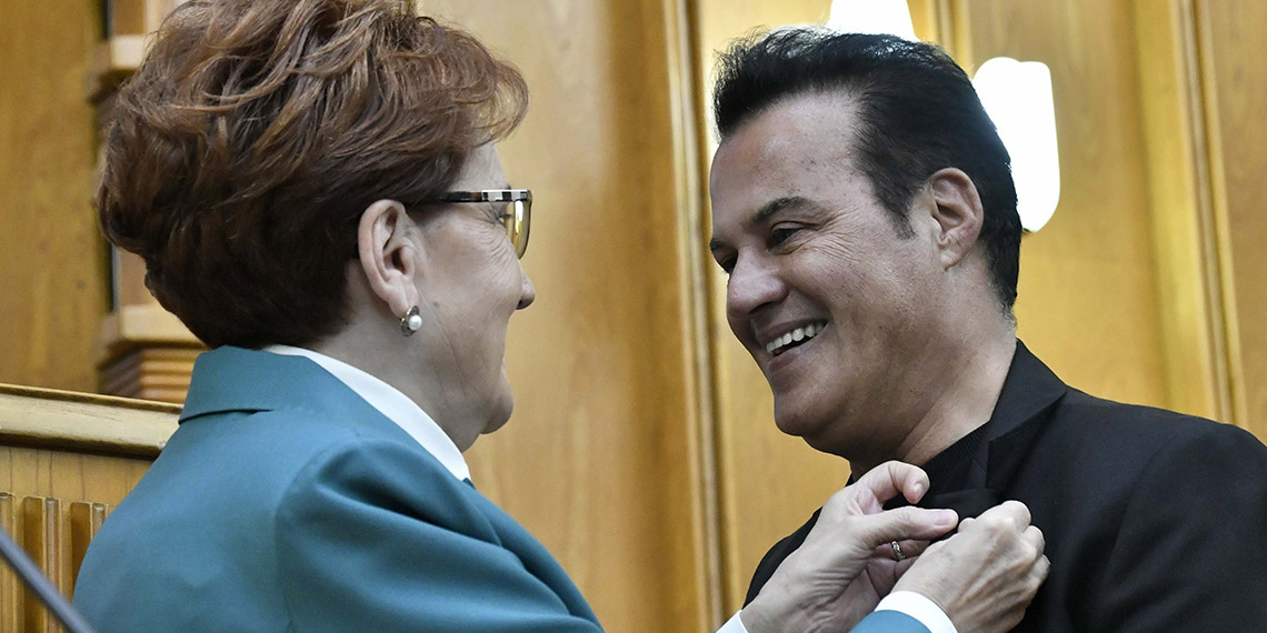Akşener, toplantıda ayrıca, partilerine üye olan şarkıcı Hakan Peker’e rozetini taktı. Akşener, Peker’in yerel seçimlerde Karabük Safranbolu’dan belediye başkan adayı olacağını belirterek, “Hakan kardeşime ayrıca teşekkürüm var. İYİ Parti ile yol yürümek kolay bir iş değil. Her taraftan taş atılan bir siyasi yapıyız. Eskilerin bildiği bir cümle vardır; ‘Bas müminin dalına, gör ondaki imanı.’ Biz nasırlara bastığımız için habire iman görüyoruz. Ne İsa’ya ne Musa’ya gidemedik bir türlü, yaranamadık. Bir sanatçı; hayatını o yönde kazanan bir arkadaşımız memleketinde daha iyi işler yapmayı göze alarak belediye başkan adayı oluyor ve kayıplarının hiçbiri umurunda değil. Allah razı olsun” diye konuştu.