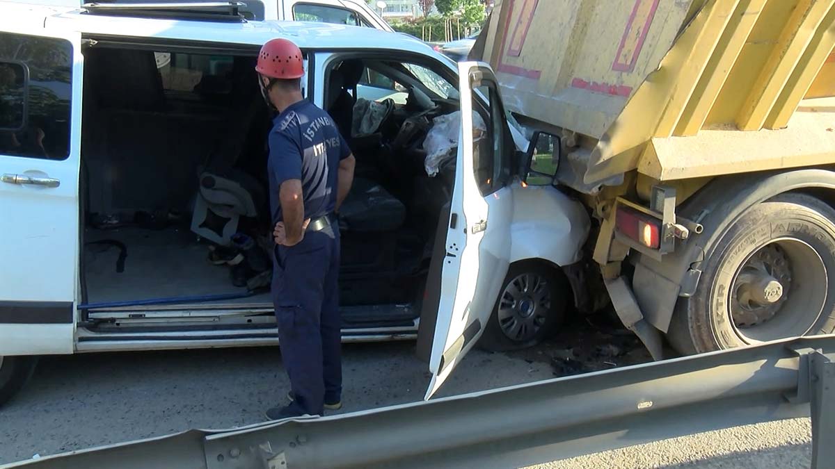 Ümraniye’de işçi minibüsü kamyona çarptı. Can pazarının yaşandığı kazada, minibüste bulunan 11 kişi yaralandı.