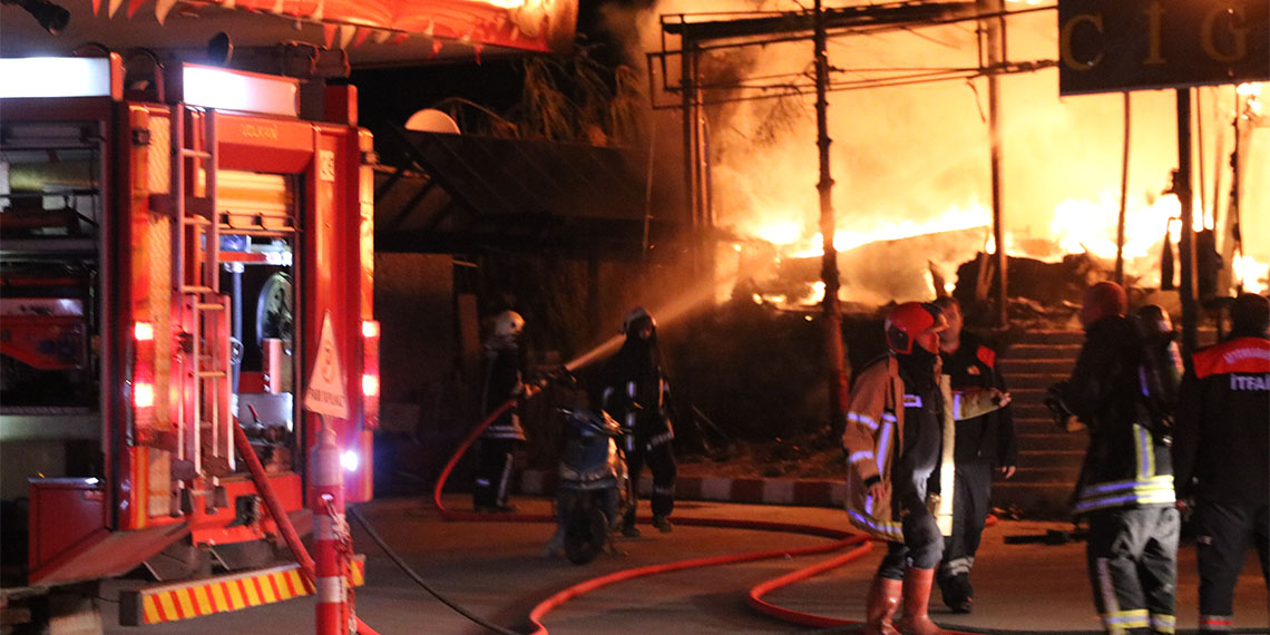 Afyonkarahisar’da iki katlı ahşap restoran çıkan yangında kül oldu. İtfaiye ekipleri alevlerin yandaki akaryakıt istasyonuna ulaşmaması için yoğun çaba harcadı. 17 kişinin hastanelik olduğu yangında restoran tamamen yandı.
