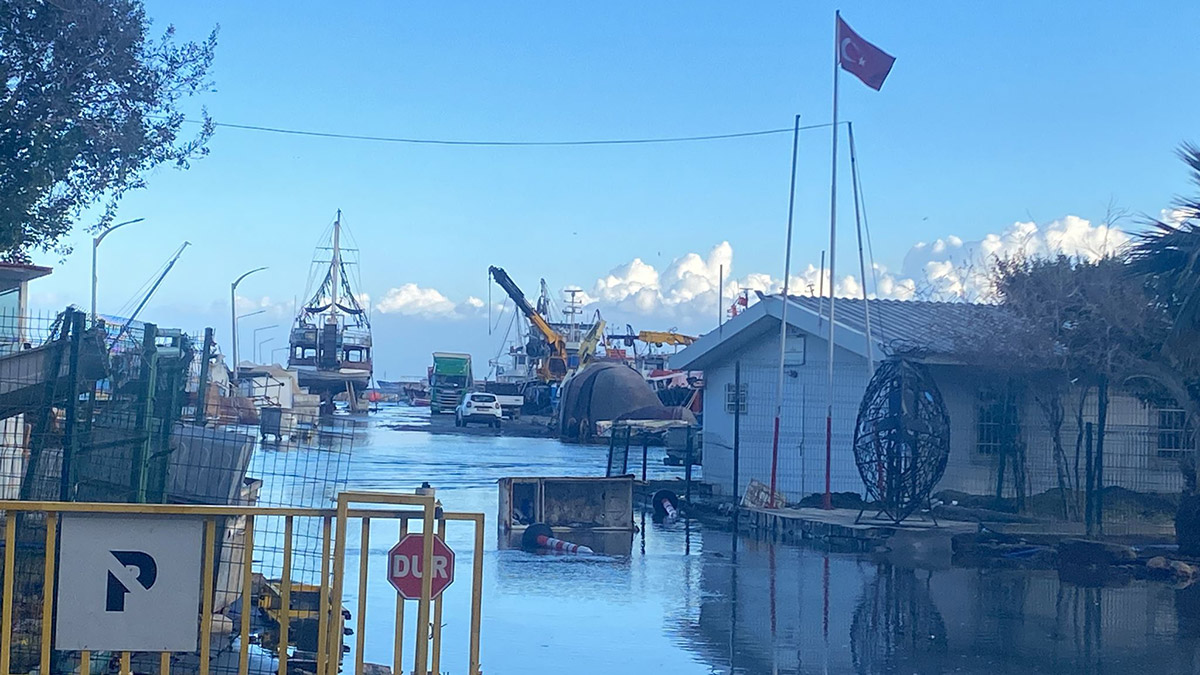 Hatay’ın İskenderun ilçesinde dün etkisini gösteren lodosun su seviyesini yükselttiği körfezde, balıkçı barınağı su altında kaldı. Cadde ve sokakların da suyla kaplandığı bölgede, suyun yükselme ihtimali nedeniyle güvenlik önlemi alındı.