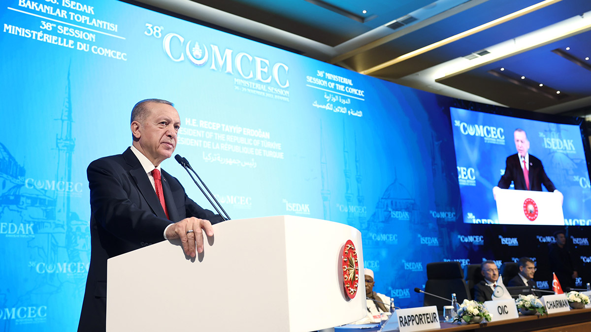 Cumhurbaşkanı Erdoğan, İstanbul Kongre Merkezi’nde İslam İşbirliği Teşkilatı (İİT) Ekonomik ve Ticari İşbirliği Daimi Komitesi (İSEDAK) 38. Bakanlar Toplantısı Açılış Programı’na katıldı. Toplantıda, İİT üyesi ülkeler bakanlar başkanlığındaki heyetlerle temsil edildi. Cumhurbaşkanı Erdoğan, “Ticaret müzakereleri toplantısında alınan kararların sistemin uygulanmasını kolaylaştıracağı kanaatindeyim. Diğer İSEDAK üyelerinin de katılmasıyla ülkelerimiz arasındaki ticareti yüzde 25 seviyesine yükseltebiliriz” ifadelerini kullandı.