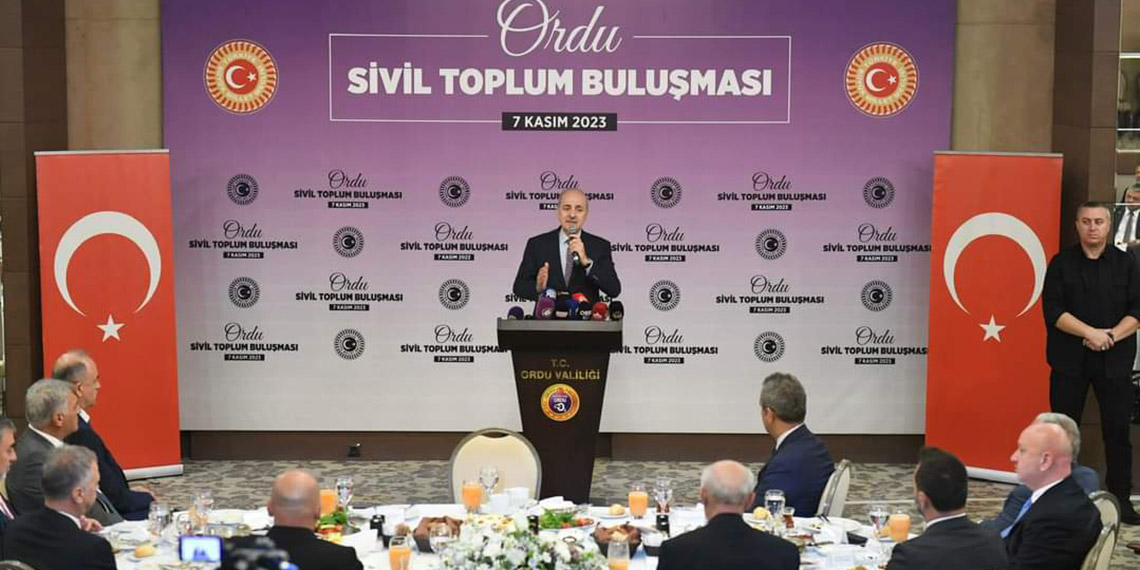 TBMM Başkanı Numan Kurtulmuş, Ordu’da Valilik tarafından düzenlenen Sivil Toplum Buluşması isimli programa katıldı. Kurtulmuş, İsrail’in Gazze’ye yönelik saldırılarının bir an önce durdurulması gerektiğini söyledi. Batı ülkelerinin güçten korktuğunu ve tarih boyunca haklının yanında durmayıp, güçlünün yanında durduğunu söyleyen Kurtulmuş, “Dün Hitlere, faşistlere ses çıkarmayanlar, en fazla işte ‘Öyle ama…’ diyerek mazluma da bir şekilde suç bulmaya çalışanlar aynı insanlardı” diye konuştu.
