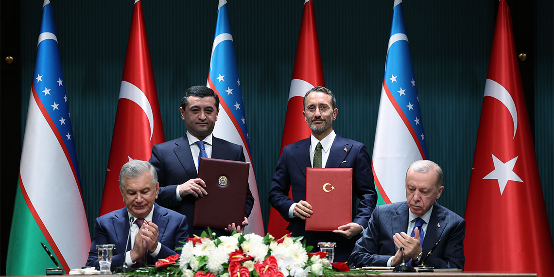 Cumhurbaşkanı Recep Tayyip Erdoğan, Cumhurbaşkanlığı Külliyesi’ndeki karşılama töreninin ardından, Özbekistan Cumhurbaşkanı Şevket Mirziyoyev ile ikili görüşmeye geçti. Heyetler arası görüşmenin ardından Erdoğan, Mirziyoyev ile ortak basın toplantısı düzenledi. Açıklamalara başlamadan önce Erdoğan ve Mirziyoyev huzurunda iki ülke arasında anlaşmalar imzalandı. İmza töreninin ardından açıklamalarda bulunan Cumhurbaşkanı Erdoğan, 2018 yılında Türkiye- Özbekistan Yüksek Düzeyli Stratejik İşbirliği Konseyini kurduklarını belirterek, “2022 senesinde ise ilişkilerimizi kapsamlı stratejik ortaklık seviyesine yükselttik. Bugün de Yüksek Düzeyli Stratejik İşbirliği Konseyi’mizin üçüncü toplantısını hamdolsun başarıyla gerçekleştirdik. Görüşmelerimizde ortaklığımızı daha da derinleştirecek adımları istişare ederek buna dair istikametimizi belirledik. Ticaret, tarım, ulaştırma, enerji, kültür, eğitim ve savunma sanayi gibi başlıklarda atabileceğimiz somut adımları ele aldık.
