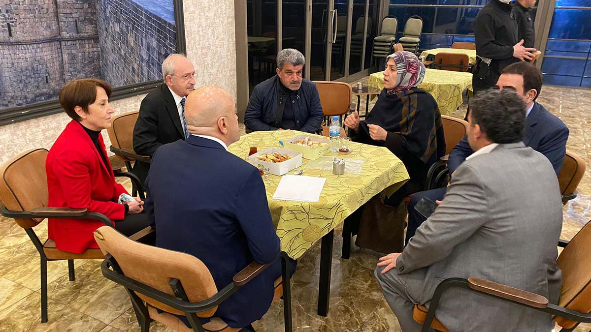 Diyarbakır’a dün gece gelen CHP Genel Başkanı Kemal Kılıçdaroğlu, HDP Diyarbakır İl Başkanlığı önünde evlat nöbeti tutan ailelerden Ayşegül Biçer ve Celil Begdaş ile öğretmenevinde bir araya geldi. PKK tarafından kaçırılan oğlu Mustafa’ya geçen yıl 29 Temmuz’da kavuşan, ancak eylem yapan ailelere destek olmaya devam eden Ayşegül Biçer ile 2 yıl önce 16 yaşındayken kaçırılan oğlu Yusuf için oturma eylemini sürdüren Velil Begdaş ile Kılıçdaroğlu’nun görüşmesi, CHP sosyal medya hesabından paylaşıldı.