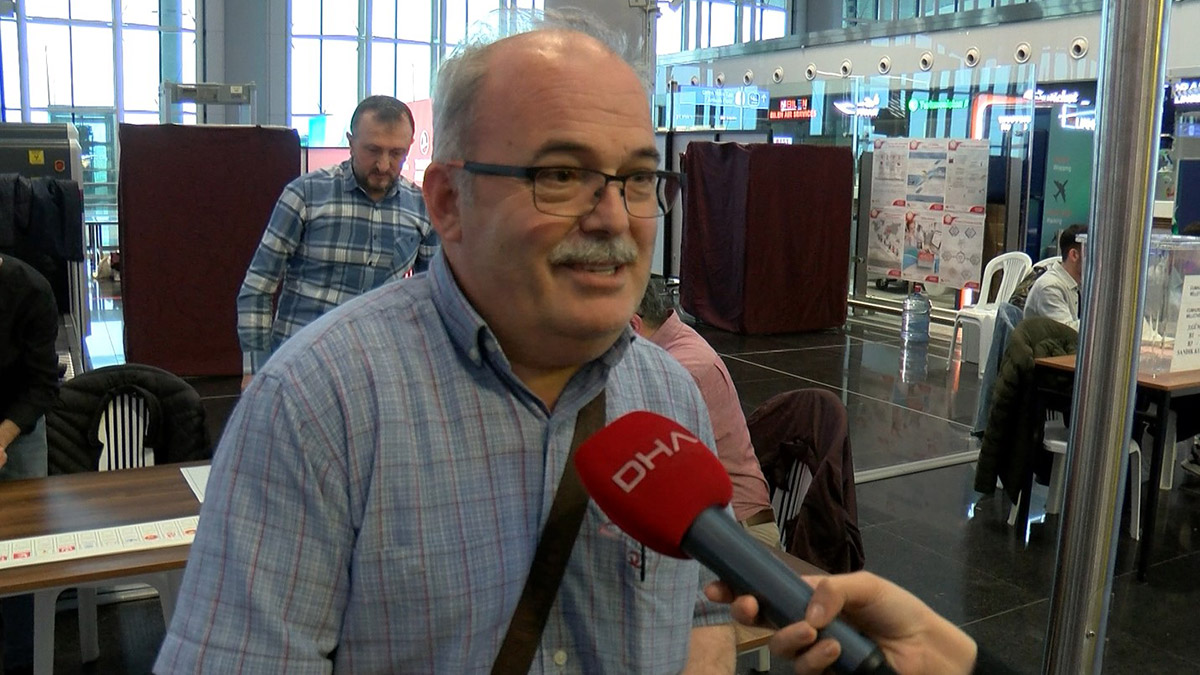 Hollanda’dan eşiyle birlikte gelen Mustafa Gürdal oyunu kullanamadı. Gürdal, “Eşim oy kullandı ben kullanamadım. Burada kaydım gözükmüyormuş. Orada konsoloslukta kullanırım. 50 yıldır Hollanda’dayım. Şimdi 10.45 uçağı ile dönüyorum” dedi.