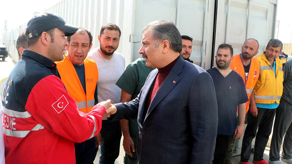 Sağlık Bakanı Koca, Dünya Sağlık Örgütü (DSÖ) Genel Direktörü Dr. Tedros Adhanom Ghebreyesus ve DSÖ Avrupa Bölge Direktörü Dr. Hans Kluge ile Hatay Eğitim ve Araştırma Hastanesi bahçesindeki sahra hastanesini ziyaret edip, incelemelerde bulundu. İkili görüşmenin ardından Koca ve Ghebreyesus, basın açıklaması yaptı. Bakan Koca, 6 Şubat’ta meydana gelen 2 depremin 11 kentte büyük yıkıma ve can kabına yol açtığını söyledi. Koca, depremin ilk saatlerinde ‘Seviye-4 Acil Durum’ ilan ettiklerini ve uluslararası dayanışmaya ivme kazandırdıklarını dile getirdi.